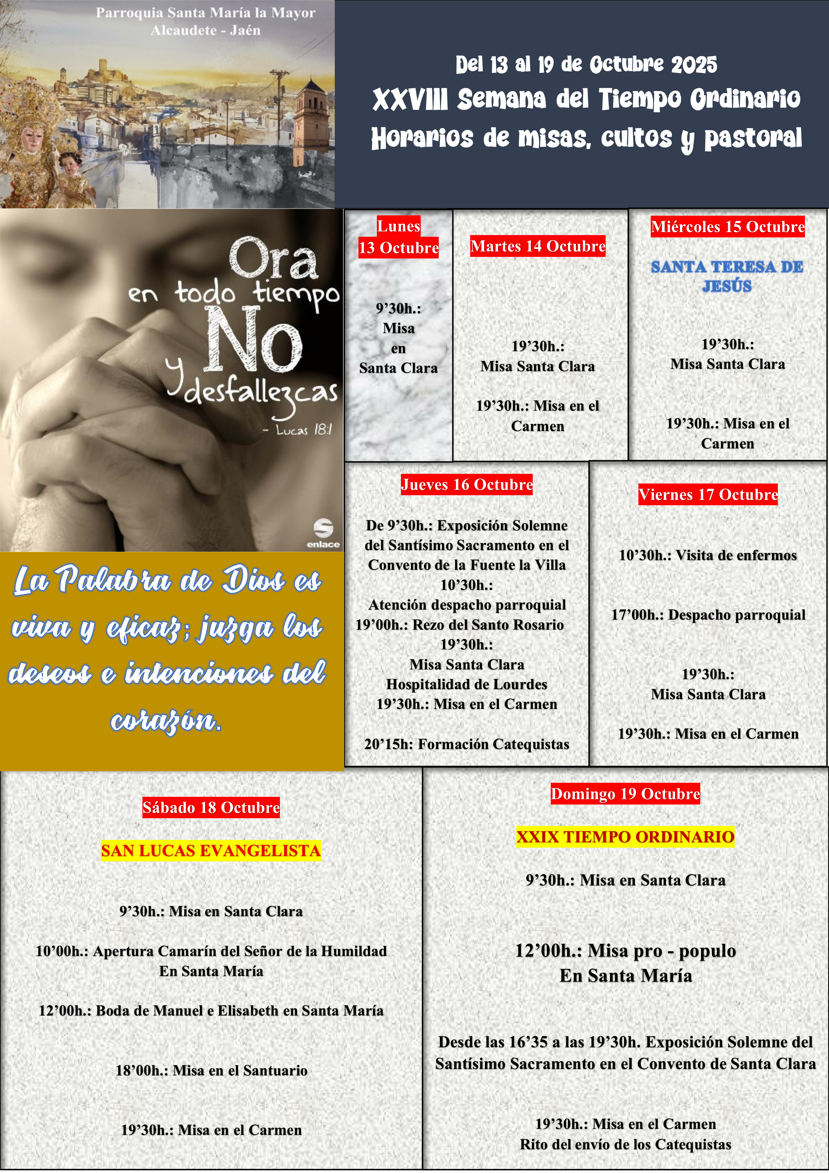 PROGRAMACIÓN SEMANAL 28 TIEMPO ORDINARIO